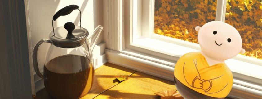 Vor drei Jahren kam er zu mir. Das kleine Stehauf-Mönchlein mit seinem freundlichen Lächeln und der gelben Robe hatte es mir auf Anhieb angetan. Ich freute mich schon darauf, ihn in meinen Resilienzkursen als Anschauungsmaterial einzusetzen, als Symbol für die Kunst, immer und immer wieder aufzustehen, egal wie oft das Leben einen umwirft..